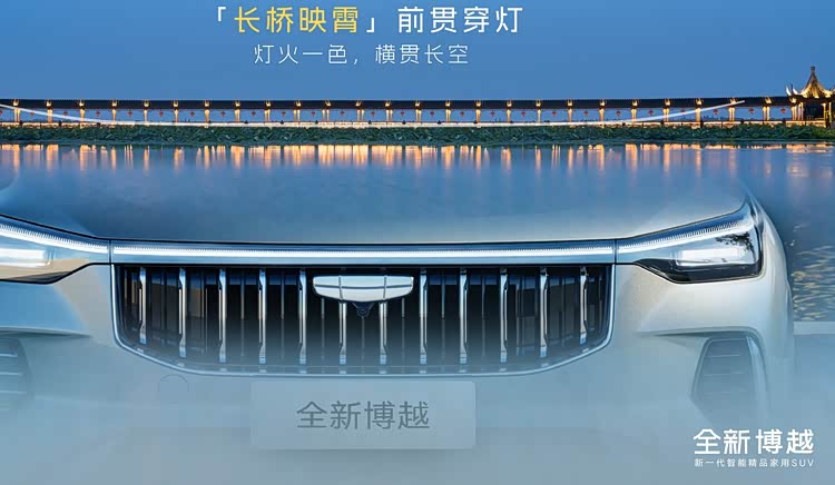 全新博越的颜值自带高阶质感,前脸“长桥卧波”格栅灵感源自江南廊桥,12道竖向镀铬饰条以桥柱阵列排布,搭配高光注塑与高亮烫印工艺,光影交错间尽显雅致。2.05米“长桥映霄”前贯穿灯采用“孔明灯”光影原理,夜间点亮如星火流动,186米的照射距离较同级领先40米,兼具美观与行车安全。车身推出琉璃蓝、雨巷白等四款国风配色,其中琉璃蓝源自河南祐国寺琉璃砖塔,经6层纳米涂装工艺打造,洗车后仍能保持数月光泽,停在街头辨识度拉满。