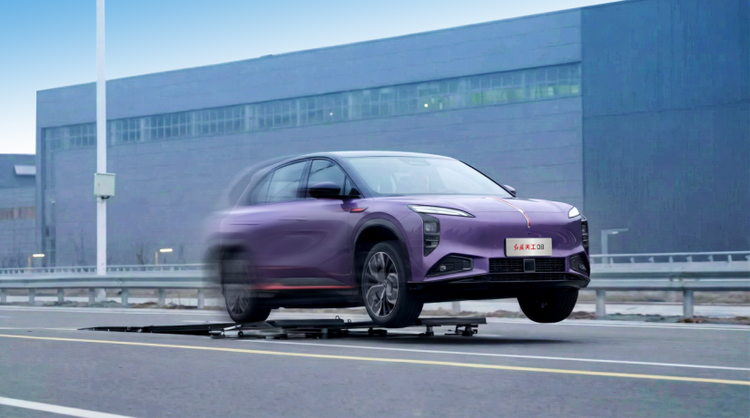 高速飞坡模拟的是车辆快速通过凸起路面的极端场景。车辆以80km/h的速度,飞跃离地间距18-20cm、长度5m的坡面。