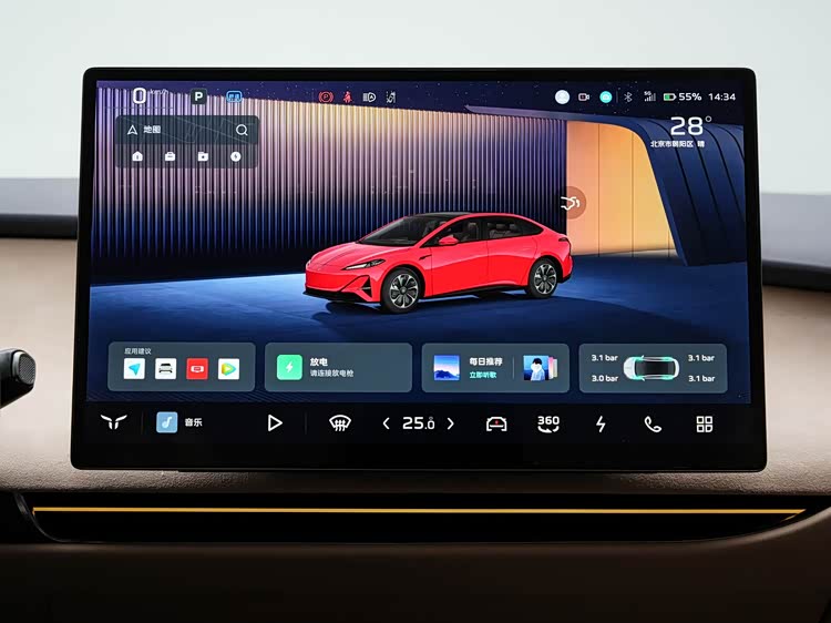 红旗天工05采用的是红旗灵犀座舱的设计,更强调智能化的体验。该车的中控屏尺寸为15.6英寸,显示清晰度很高。