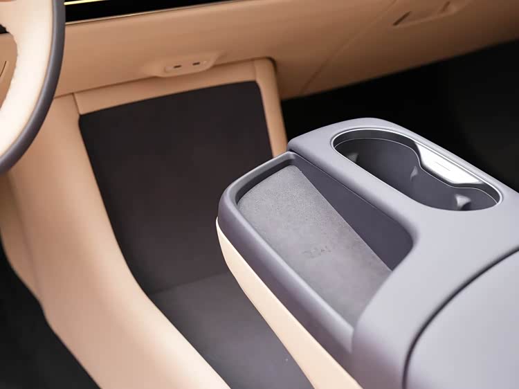 与现在新能源车千篇一律的中控扶手箱设计不同,红旗天工05的无线充电手机槽与杯架采用的是左右设计,这样就把下方的储物空间打开了,更方便乘客取放物品。