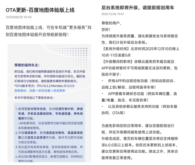 那么应对这个事情,除了车主个人的一些“骚操作”之外,车企的OTA推送也至关重要,毕竟不是人人都是“动手达人”,搞不好还会起到反作用。最近从不少车主的真实反馈中,了解到福特自今年8月下旬起,持续推进 蒙迪欧(参数|询价)车机OTA升级,并在11月27日至12月10日期间,将升级范围扩大至90000+车主。