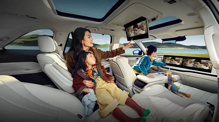 尺寸方面,全新蓝山定位中大型SUV,长宽高依旧为5156/1980/1805mm,轴距为3050mm,后备厢容积为349-1150L。车内采用2+2+2的六座布局,全系配备真皮座椅和座椅加热,二排提供双零重力座椅,一二排具备通风/按摩功能,二三排支持靠背调节,配备杯架和后排小桌板,提供极致舒适的乘坐体验。