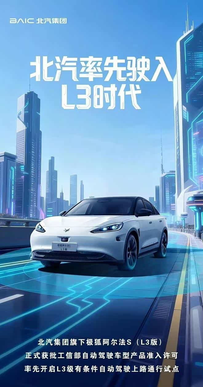 北汽的相关人士对外介绍,北汽极狐试点车辆由指定的使用主体在监控下组织运营,汽极狐的L3级自动驾驶方案配备了包括激光雷达在内的多传感器冗余系统,比如极狐阿尔法 S(L3 版)搭载了 包含 3 颗激光雷达在内的 34 颗高性能传感器,更侧重于车辆自身的感知决策能力,即强化“单车智能”的可靠性,且车内均配备安全员。北汽集团称,由北汽集团牵头组建的联合体已率先进入国家四部门开展的智能网联汽车上路通行试点,计划于2026年一季度,将以特定场景启动运营。