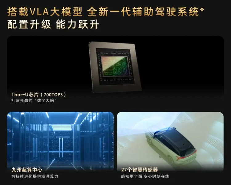 而让蓝山智能辅助驾驶体验跃升的底层基础,就是从254TOPS的Orin芯片,换装了英伟达芯皇Thor芯片,算力超过了700 TOPS,算力实现176%的冗余提升,功耗还相较于双Orin-X降低30%。