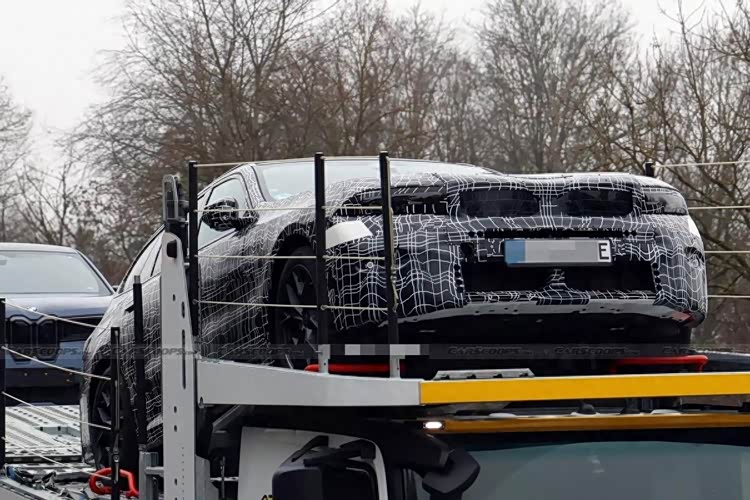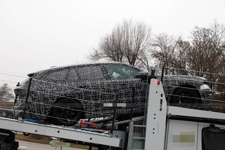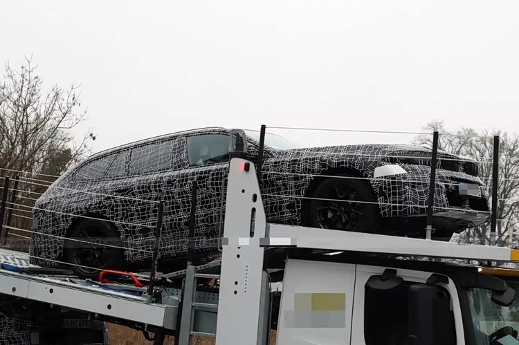 毫无疑问,车辆的扁平双肾依旧更接近于现款。但不论是边框结构产生的层次与立体变化,还是远近光大灯,这种属于CLAR平台的设计看上去还是比较经典的。特别是在联合保险杠展示锐利感这件事上,测试车虽然重重伪装,但结构样式其实能根据轮廓识别出大半。加上前保险杠中区还有类似扩散的分区打造,就这么静态停靠在拖挂车上,也依旧有运动效果。