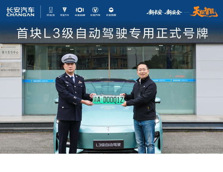 首块L3级自动驾驶专用正式号牌授予长安,是长安汽车四十余年造车底蕴与智能化转型成果的集中体现,诠释长安汽车对安全底线的坚守。