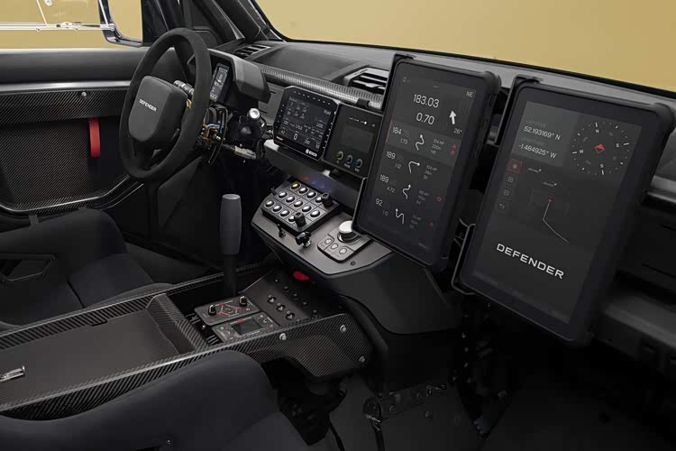 座舱设计兼顾安全与实用:双竖屏触控仪表盘 + 抬头显示,让关键数据一目了然;碳纤维材质内饰减重且抗冲击,物理按键布局适配颠簸环境操作。一款顶级赛车的诞生,从来都不是单纯的机械工程,更是人与机器的协同进化。Defender D7X-R 的研发过程中,达喀尔传奇车手斯特凡纳・彼得汉塞尔(Stéphane Peterhansel)的参与,为这款赛车注入了独特的 "赛道基因"。