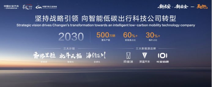 而从3000万辆起,将是“新长安”的起点,是“新长安”面向世界一流汽车品牌这一目标的新开始。“十五五”规划下,中国长安将继续以新能源“香格里拉”、智能化“北斗天枢”、全球化“海纳百川”三大计划为牵引,力争到2030年,实现整车产销超500万辆,其中新能源占比超60%,海外占比超30%。
