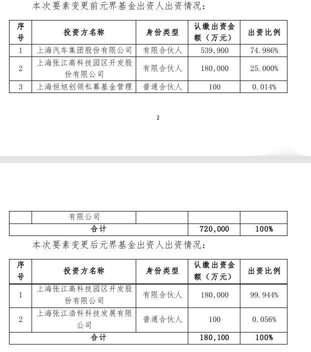 之前,上汽并不是直接持有智己汽车的股权,而是通过一个叫“元界基金”的平台间接持股。这个基金是上汽联合上海张江高科、恒旭资本在 2020 年一起设立的,目标也很明确——专项投向高端智能电动汽车项目,也就是智己汽车。