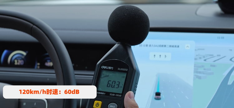 NVH方面,这次实测的数据为:100 km/h在57dB左右;120 km/h在60dB左右。从这组数据来看,高速续航状态下,全新蔚来ES8车内静谧性在同价位车型中表现比较亮眼,特别是120km/h状态下在我们测试车型中处于TOP级别。