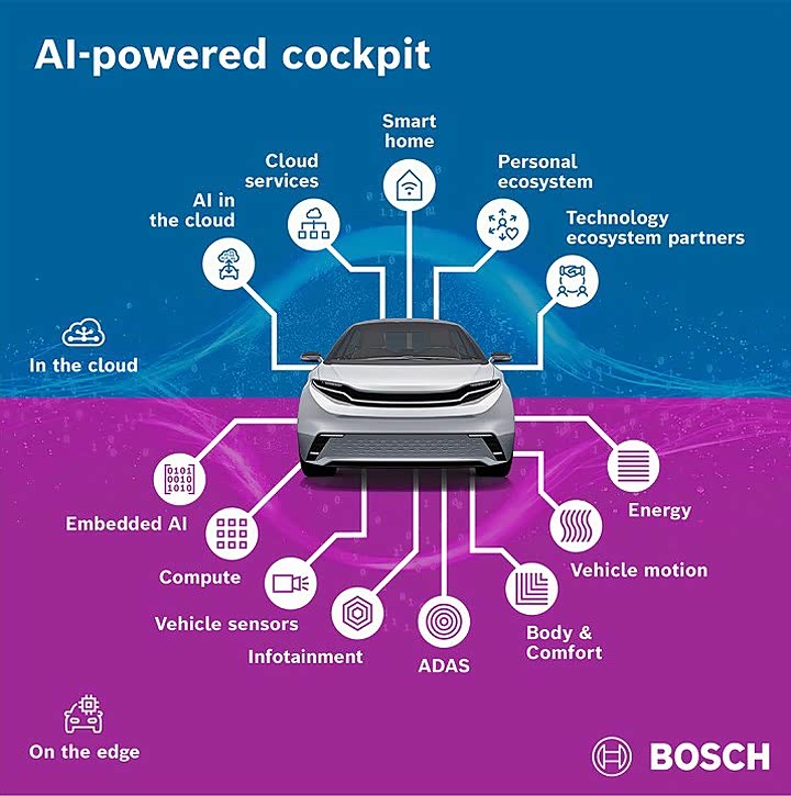Bosch 宣布将于 2026 CES 大展发表 AI 人工智能驾驶舱方案,整合有 Microsoft Foundry 平台,可无缝存取 Microsoft 365 Office 套件,将汽车驾驶舱打造为行动办公室,并且亦整合 Microsoft Teams 通话功能,实现远端会议与沟通无畅的效果。Bosch AI 驾驶舱平台采用 Nvdia Drive AGX Orin 芯片,并支援 Nvdia CUDA,可实现客户所需的客制化功能。