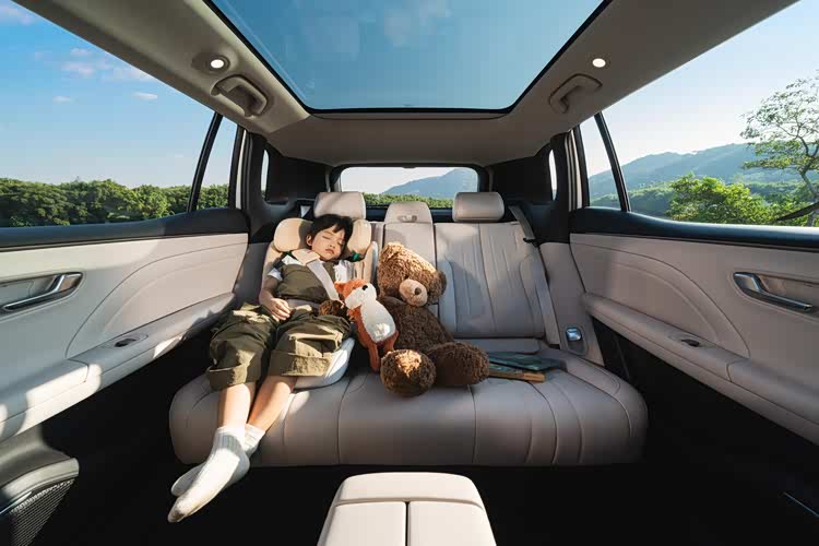 构筑移动堡垒是埃安i60的另一大亮点。其乘员舱和电池仓均采用1500MPa核艇级热成型钢打造,高强度钢占比高达72%,车身扭转刚度出色。车内标配6个安全气囊,其中2.2米超长侧气帘保压时间长达20秒,配合后排儿童专属头部保护腔体及安全带导环设计,全方位呵护每一位乘员。值得一提的是,该车拥有同级唯一的紧急下电功能,车辆失控时可快速切断动力并保留转向刹车助力,配合哨兵模式全天候录像,将被动安全与应急防护做到了极致。