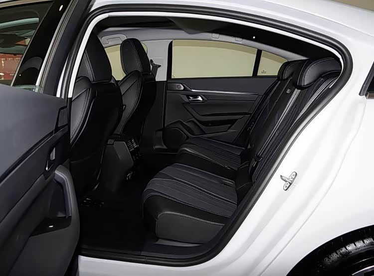 从外观上看,它仍然保持着那熟悉的“狮魂美学”,气场十分强大。在无边界点阵中,网格与“獠牙”LED日行灯的组合使其具有很高的识别度;引擎盖上的凸起筋线为其增添了更多的运动感。车身长度为4870mm,搭配短前悬和溜背的设计线条,完全不显得过于笨重,而0.25Cd的低风阻系数也非常引人注目。高配置的驭享旗舰版车型配备了悬浮黑钻车顶和18英寸的双色轮毂,这不仅提升了车辆的整体质感,其尾部的狮爪尾灯在夜间的点亮效果也非常出色,双边双出排气系统更是象征着强劲的动力输出。