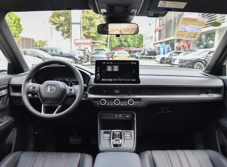 来到内饰,皓影的布局和设计都可以看到本田思域或者自家其它车型的风格,总体上的风格偏向家用,布局上很居家很简约。但质感上也有明显的提升,比如中控台以及各个细节上都加入皮革包裹,摸起来的质感还是不错的。比如座椅还加入红色缝线工艺,车内保留大量的实体按键,保留下按键式的换挡机构,旋钮式的空调调节,按键的保留也为车主带来便利性。同时新增了SUB接口和C型接口,液晶仪表也来到10.2英寸,而悬浮式中控屏为10.1英寸,并支持4G网络模块,支持CarLife,以及语音唤醒等功能。像常规的配置也升级为电动调节,比如座椅支持电动多向调节,电动天窗、电动后视镜带加热功能,还有一键启动和电子驻车等功能。