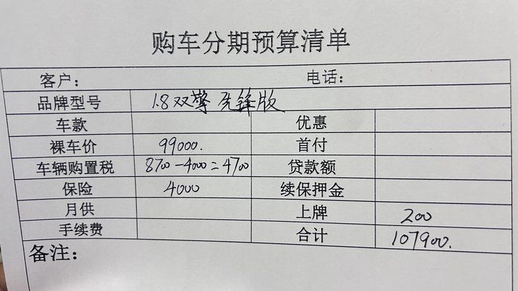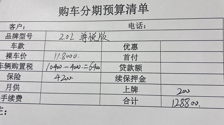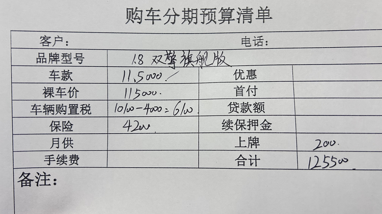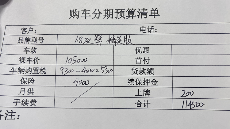 所以我们就再看一下中配1.8L E-CVT精英版,指导价它比1.8L E-CVT先锋版贵了1万,不过限时价格只贵了6000元,也就是10.5万。这款车补贴后购置税5300元,保险4000元,上牌200元,落地价格在11.45万左右。