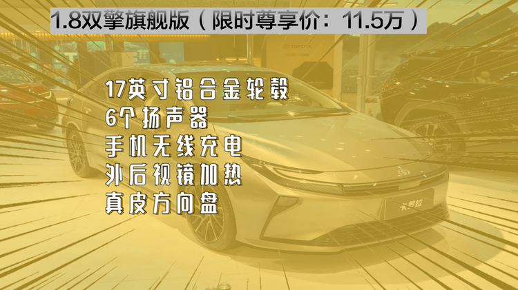 那么再往上看,双擎1.8L E-CVT旗舰版,现在是11.5万,又贵了1万。加上购置税、保险等,现在的落地价格约12.55万。
