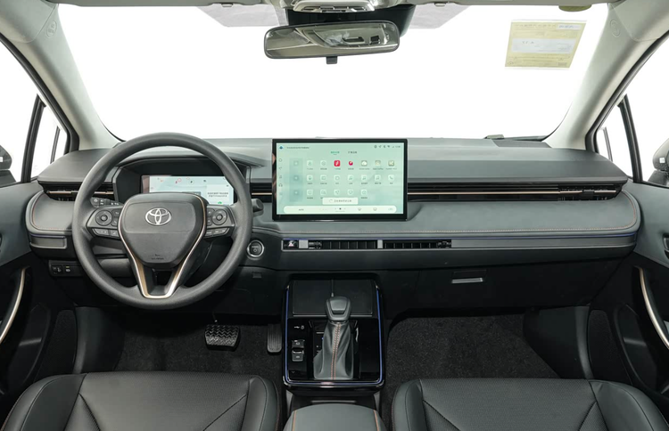 车内也向智能化和简洁化转变,这可能是很多丰田车老粉难以接受的,整个中控区域几乎取消掉了所有实体按键,空调出风口也变得扁平化。中高配车型配备有8.8英寸全液晶仪表、12.9英寸中控屏、50w高功率手机无线充电、64色氛围灯等功能,全部车型均支持Apple CarPlay、华为HiCar等手机互联,整体符合当下用户的用车需求。