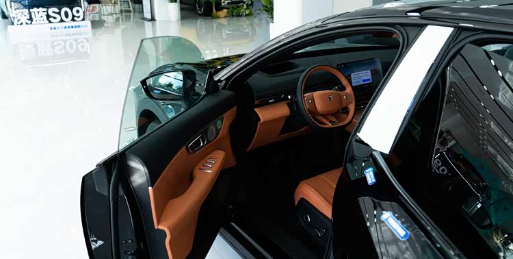 全新深蓝S07的座舱设计灵感源自豪华游艇,内饰软包面积高达10.7平方米,覆盖了车门、中控台及座椅等常接触区域。采用超纤绒感麂皮材质与皮质打孔工艺相结合,再配以随音乐律动的氛围灯,营造出一种科技与奢华并存的感觉。尽管其中控屏和AR-HUD尺寸略小,但这并不影响整体观感。全新深蓝S07更注重细节处理,例如中控向日葵屏能够向驾驶员或副驾驶一侧旋转;前排配备了双零重力座椅并带有石墨烯理疗加热功能;全景天幕还特别增设了物理遮阳帘;此外,车内还装有智能冷暖箱,这些配置都是基于用户反馈而精心挑选的功能。
