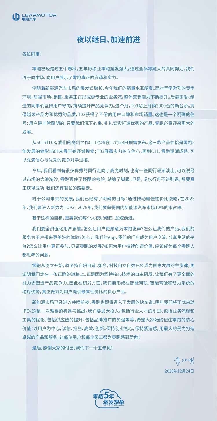 2019,2020,2021……2025,一些本该成为过去式的数字因为一封信,串起来了零跑汽车0到1,到2以及对于未来企业的脉络。