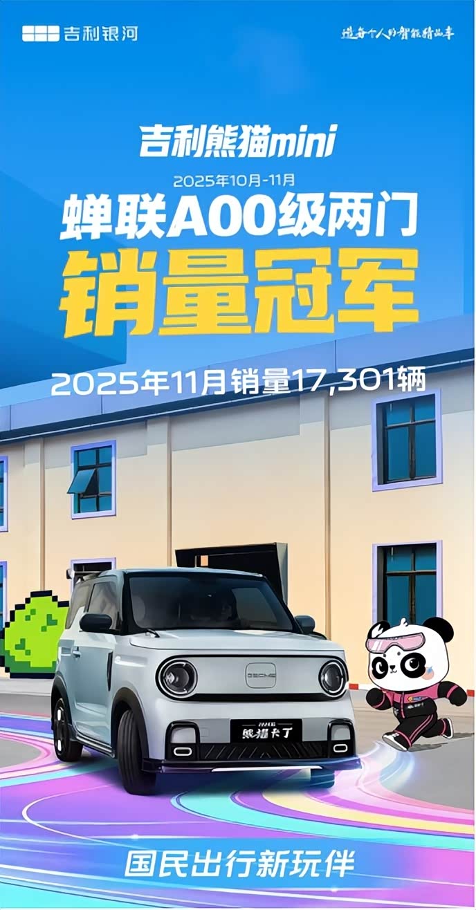 对于纯电车型而言,电池安全始终是用户选择时的核心考量。主打野趣出行的熊猫骑士凭借50项严苛测试+IP67级防水防尘的电池安全标签引发关注,其电池可靠性究竟如何?我们不妨从技术细节与实际场景中一探究竟。在此之前,吉利熊猫mini25年11月销量17301辆,10-11月蝉联A00级两门销量冠军。