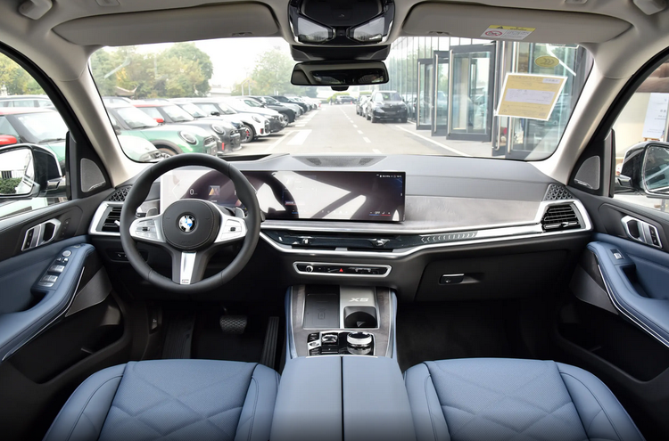 拉开车门,进入2026款宝马X5的座舱,内饰配色包含海蓝、摩卡色和火山红等颜色,主打的就是个性与反差。同时该款车的中控台通过大面积的软性材质包裹而成,质感和触感都不错,而且细节之处还融入大面积金属饰条点缀,精致感有效凸显。12.3英寸+14.9英寸双联屏悬浮在中控台上,有效提升座舱智能化部分,拥有卫星导航、语音交互等实用性功能,齐全的配置基本贴合主流用户的使用需求。内置高通骁龙8155P芯片,车机流畅度又得到进一步提升。值得一提的是,2026款宝马X5还全系标配16扬哈曼卡顿音响,喜欢听音乐的发烧友对此没有抵抗力。