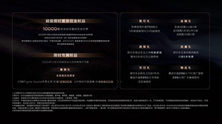 因此,当我们综合审视——越级的尺寸、高效的双动力路径、持续进化的智能生态、以及越级的舒适配置——并将其全部归拢于11.58万元起的定价框架内时,星耀8“洗牌”的底气便完全浮现。它并非通过简配降价,而是凭借体系化的技术普惠和精准的价值重构,重新定义了B级混动轿车的价值公式。此外,截至12月31日的限时权益,如首任车主三电终身质保、免费升级23扬声器音响及VIP行政座椅、5年高速NOA功能免费使用等,进一步放大了这种价值优势。