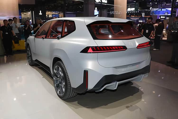 BMW车标的两侧坚固的筋线向后方机盖延伸,这也是宝马经典设计的继承。双肾格栅两侧采用了熏黑透明饰板和熏黑大灯,形成了一体化的效果,这不仅显得很酷,而且眼神中透露出锐利和凶狠。前包围设置了双排横幅式的通风开口,车身轮廓简洁饱满,线条流畅。前、后翼子板的位置隆起,营造出一定的肌肉感。车门把手采用了与宝马Vision Neue Klasse X概念车相同的策略,被设计在车窗下边框上,可以改善车身的气流流向,减小风阻。