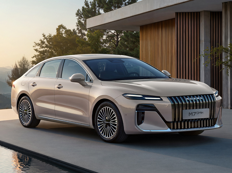 尽管荣威M7 DMH的外观设计有劳斯莱斯前设计师操刀加持,初期曝光的渲染图也尽显大气舒展的气场,但受限于车身长宽尺寸的硬约束,实车观感远没有达到渲染图的惊艳程度。