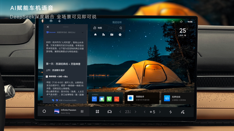 操作复杂曾是传统车机的一大痛点,而Flyme Auto凭借与Deepseek大模型的深度融合,彻底解决了这一问题。用户只需一句打开主驾座椅加热,温度28度,系统便能精准识别指令,同步调节座椅功能。若想调整空调风向,说空调风向改为上出风,也能快速响应。更值得一提的是,其无界空间设计打破了生态壁垒,常用的社交、音乐、视频等应用无缝衔接,操作逻辑与手机高度一致,用户无需重新适应,上车即能流畅使用。