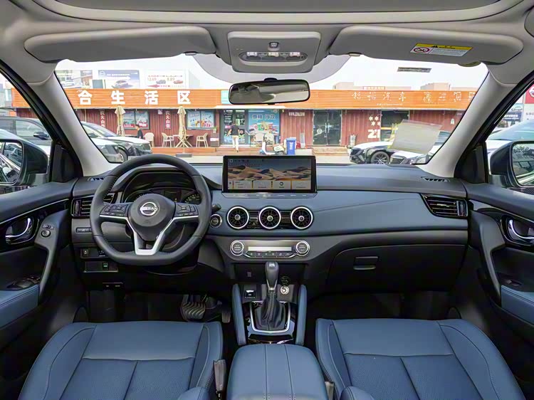 蓝黑内饰搭配环抱式座舱尽显沉稳大气,中控台采用了经典的T字型设计,仪表盘依旧是经典造型,中间是5英寸的液晶显示屏,可显示信息还是很丰富的,12.3英寸悬浮式中控屏支持导航,蓝牙/车载电话,车联网,4G网络,OTA升级,语音识别控制等功能,皮质多功能方向盘采用了平底式设计,左侧是娱乐功能按键,右侧是定速巡航按键。