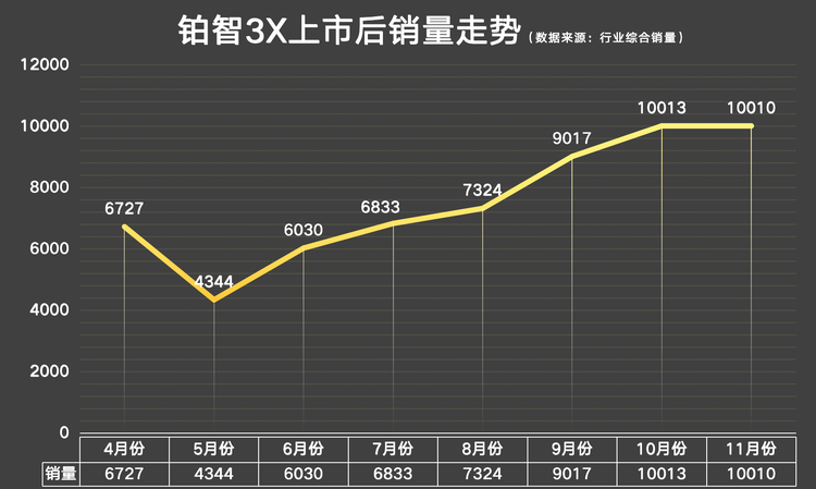 咱简单回顾一下这款车的销量,铂智3X是2025年3月份正式上市的,我把它上市之后这几个月的销量情况做了一个统计,汇总成了下面这张表格,基本上能够一目了然了吧?从5月份开始,铂智3X的销量一直是处于上升趋势的,尤其是10月份和11月份,它的销量都超过了1万台,对于一台全新的纯电动车而言,我觉得这样的销量表现应该已经超出丰田的预期了吧?毕竟,在这之前,无论是德系还是日系,合资品牌推出的纯电动车,基本上没有几款成功的,铂智3X算是破例了。