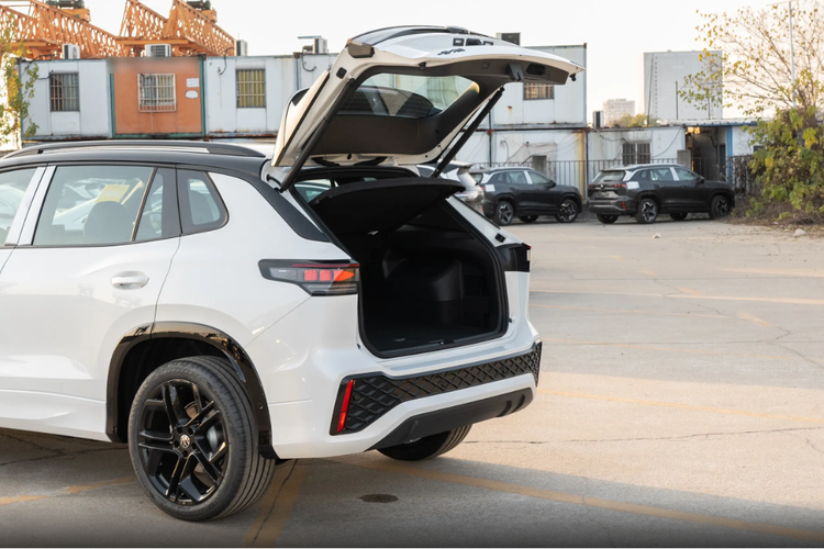 绕到车身侧面,一条硬朗的腰线从车头一直扎到车尾,后门那儿还带个折角,一下子就把立体感给提上来了,一点不显得单调。熏黑轮毂往那儿一摆,运动范儿直接拉满,特别对年轻小家庭的胃口。车尾设计也是层次分明,最亮眼的就是尾灯。一亮起来,里面那个“X”形的灯腔,一下子就成了视觉焦点。