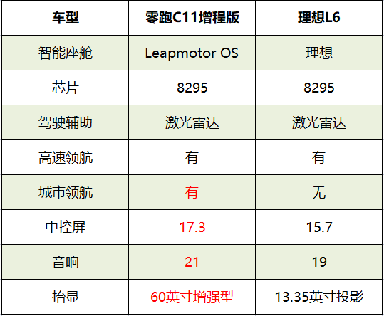 行驶在路上,呈现在你眼前的,零跑C11是60英寸的增强型HUD抬显系统,可以根据自己的需要,来显示车辆、导航、驾驶辅助、多媒体等,无需低头就能掌握多项车辆信息;理想L6 Pro则提供一块13.35英寸的HUD投影,智能显示简单的车速等信息。