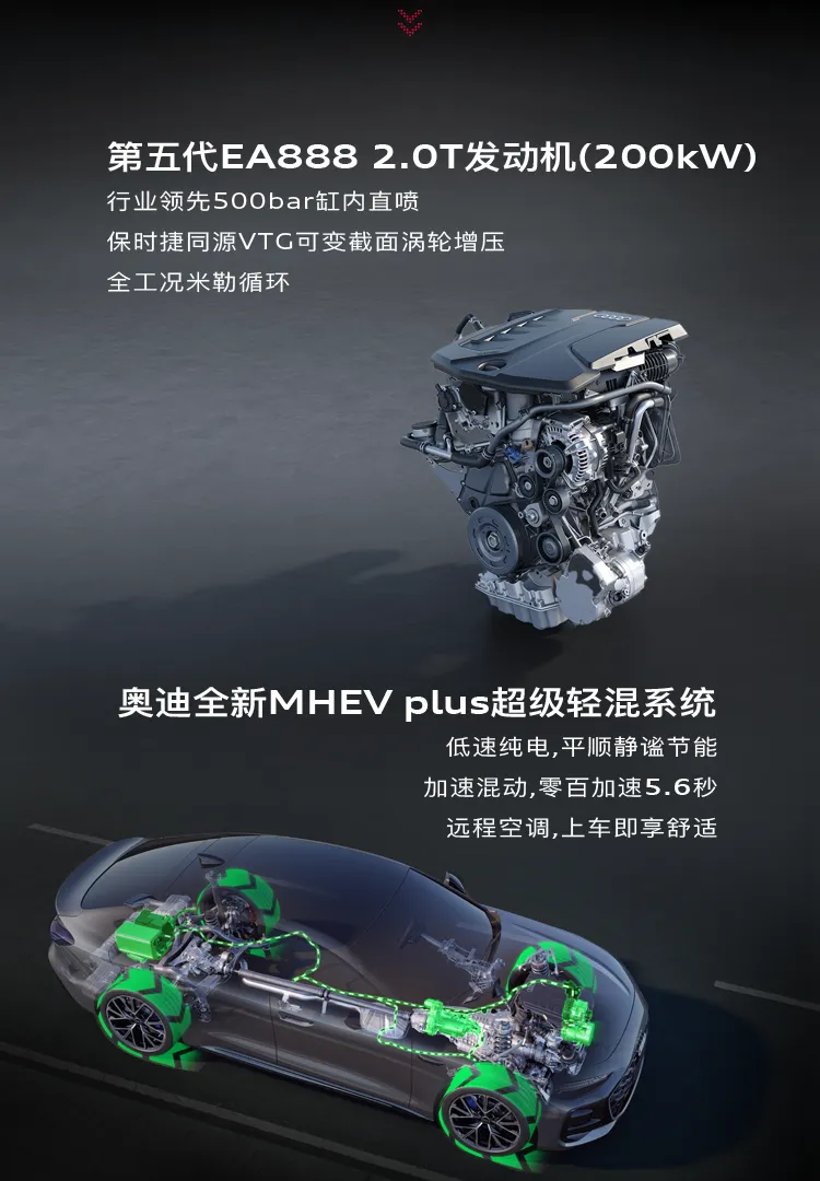 动力部分,新车搭载了经过调整的EA888 Evo5系列2.0升涡轮增压发动机,并可选配由48伏电机组成的轻混系统。发动机输出分为两种调校,最大功率分别为150千瓦和200千瓦,传动系统匹配7速双离合变速箱。轻混系统的加入使得车辆在低速行驶、泊车及空调使用等场景下能够以纯电模式短暂运行。