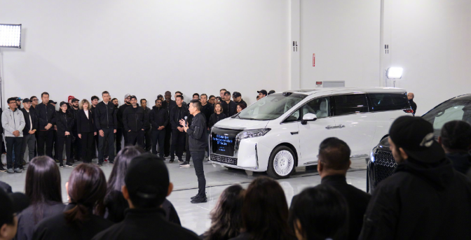 从贾跃亭发布的汽车背景图,我们能够看出这款新车分为两种,一白,一黑的外观配色看起来确实非常精致。白色外观的车型是带有车载屏幕的,而且是在中网部分,所以说贾跃亭做了创新。这项功能在国内可能用处并不是特别大,但在美国市场确实比较新颖,可以在户外看橄榄球赛,倒也是切合当地的需求。有意思的是,这款FF FX Super One其实就是贾跃亭从国内引入到美国的,但是从背景图我们能够清晰发现,身后有一大排新车的骨架,这是不是暗示市场这属于自主制造呢?