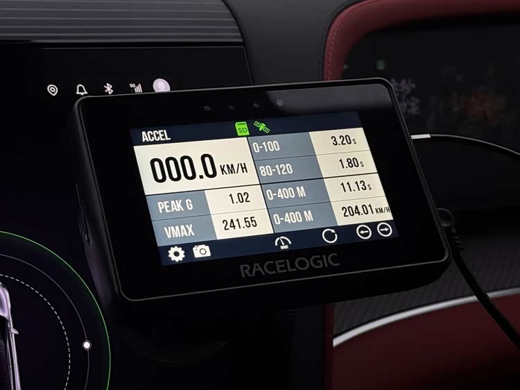聊仰望的时候,绕不开四电机的强悍动力。我在封闭场地以75%电量测试过,仰望U7在竞速模式下,0-100km/h成绩是3.2秒,而0-400m只用11.12秒就达到204km/h尾速,满电状态应该还有进步空间。仰望U7起步时有超过1G的瞬间加速力,同时也刻意放松对扭矩的压制,让车轮带着轻微滑动,形成更强感官刺激,乐趣加分。
