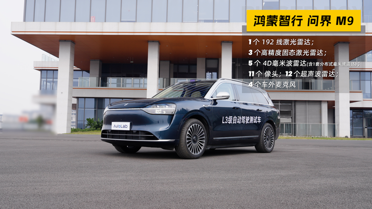 我们这次体验的测试车型是 问界M9(参数|询价),车身搭载了包括4颗激光雷达、4个麦克风等36个传感器。