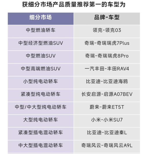 如果说新能源是奇瑞面向未来的重要布局,那么燃油车则是其立足当下的坚实根基。在这次推荐度研究中,奇瑞在传统动力领域的表现同样令人瞩目。瑞虎7PLUS不仅摘得“中型经济型燃油SUV”细分市场的双项第一,其兄弟车型瑞虎8PRO也在“中型燃油SUV”类别中强势登顶产品质量推荐榜首。这些成绩的背后,折射出奇瑞在内燃机技术、底盘调校、NVH控制等传统优势领域的持续精进。更重要的是,即便是在电动化加速推进的今天,奇瑞依然没有放松对燃油车品质的打磨,反而将其视为品牌信誉与用户信任的“压舱石”。