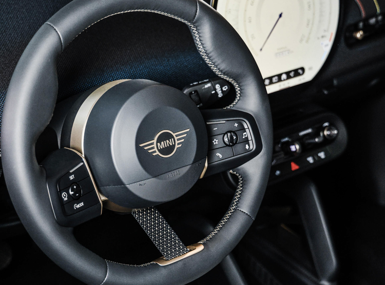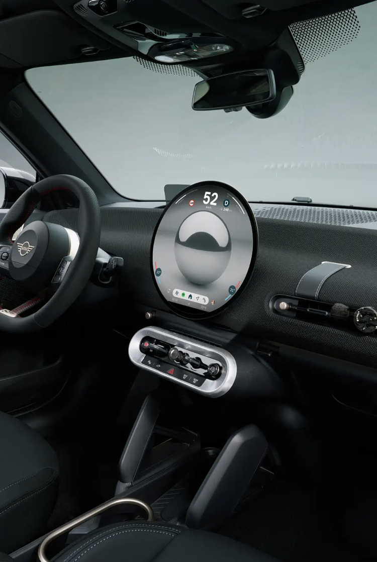 内饰方面,燃油版车型采用红黑配色搭配赛旗饰面,并提供JCW同款运动座椅;电动版车型则首次采用全黑内饰,并采用Vescin材质黑色座椅与之搭配。环抱式中控台配备了尺寸更大的圆形窄边框液晶仪表,取消了传统的仪表,取而代之的是HUD抬头显示系统。配置上,主副驾驶安全气囊、前后排侧气囊、头部气帘、胎压报警、驻车雷达、倒车影像、定速巡航、发动机启停、上坡辅助、分段式电动天窗、无钥匙进入/启动、真皮方向盘、换挡拨片……