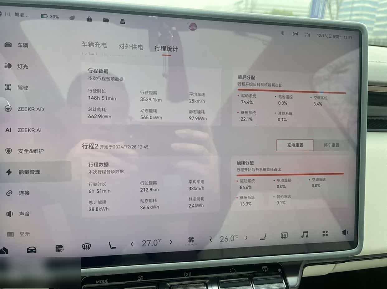 闲话少说,先来报告一下基本情况。我所在的地区是浙北,气温基本维持在个位数。我的车型是 极氪7X(参数|询价)后驱长续航版,搭载100度三元锂电池。日常行驶路线大致是高速和市区各占一半,经常往返于杭州。为了节省能源,我通常不开空调,而是选择开启方向盘和座椅的一档加热功能,这样比开空调还要舒适哦。