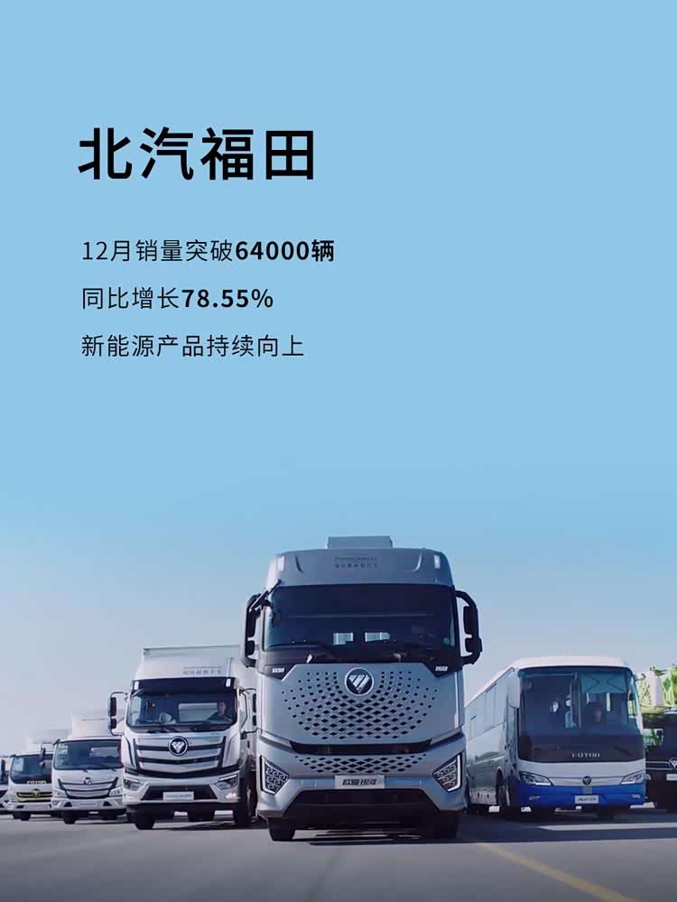 北京现代工厂成功下线第1200万辆汽车,同时北汽福田在12月份销售业绩亮眼,销量超过6.4万辆,同比增长高达78.55%。