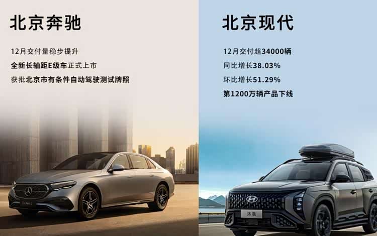 极狐汽车已成功交付8000辆。至于合资品牌中的北京奔驰,尽管主力销量品牌未在12月公布具体数据,但北汽表示其交付量正稳步提升。参照过往数据,北京奔驰在2023年11月的交付量已超过4.4万辆。