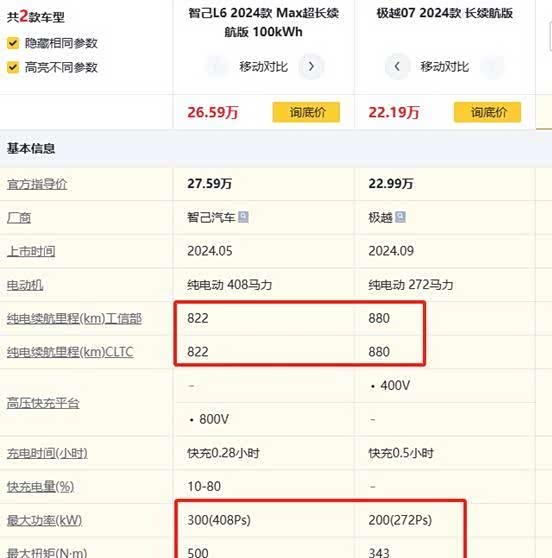接下来是智己L6,其官方指导价为27.59万元(Max超长续航版),配备100千瓦时的电池组。尽管智己L6拥有更强劲的动力和先进的800伏高压充电架构,但其价格比官方指导价贵了4.6万元。在考虑性价比时,我们还需要关注其他方面的配置。例如,极越07在免费赠送装备后,其舒适性配置更高。综合考虑各方面因素,极越07似乎是一个更合适的选择。