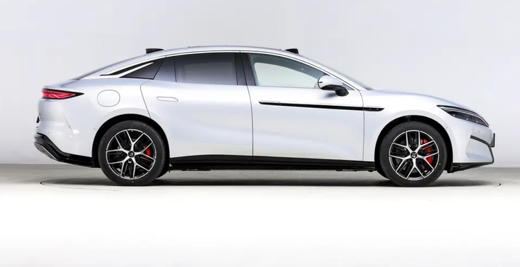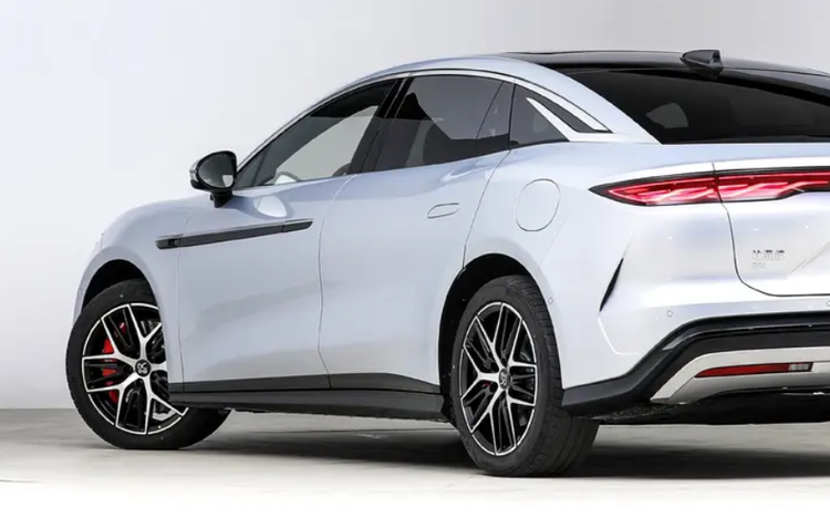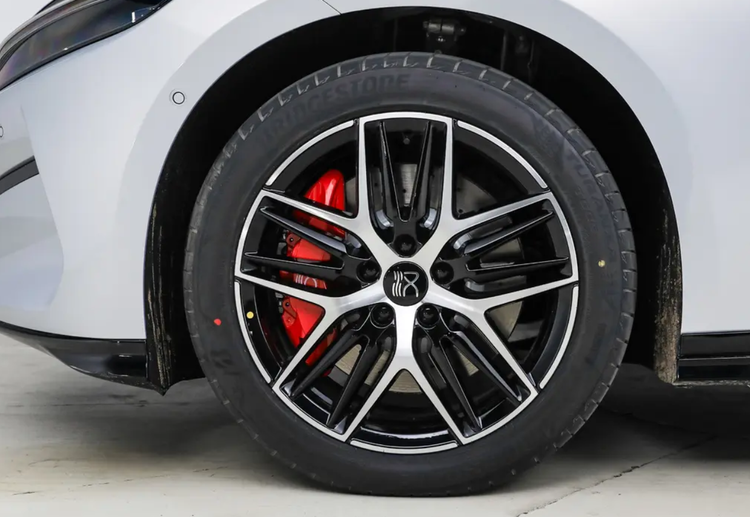 车顶是配有激光雷达,刚好与车尾的鲨鱼鳍天线相呼应,形成一条线。前方也是配有三目摄像头,搭载云攀-C预瞄系统,可以实现高阶智驾。它的尺寸和轴距都有加长,尺寸为5050*1960*1505毫米,轴距为2970毫米,因此侧面开起来很长。而且搭配的轮毂造型很简约也很运动,并配有红色卡钳,还是双向四活塞的布局,包括刹车片打孔工艺都提升侧面的运动基因。纯电版本可以达到2.7秒是加速成绩,配合上四驱系统,运动属性非常炸裂。而且A柱的黑色饰板延伸到门把手,内置一个感知摄像头,在C柱的镀铬条也是融入中国元素,如同画笔一样帅气。而尾部的看点在于尾灯组,点亮后内部呈现出羽毛一样的造型,可以为尾部带来更多的立体感。尾部融入很多中国风的元素,包括双出排气布局都是非常有设计感,而且配是电动尾门,后备箱带有2个扬声器,而且空间很深,挺能装的。