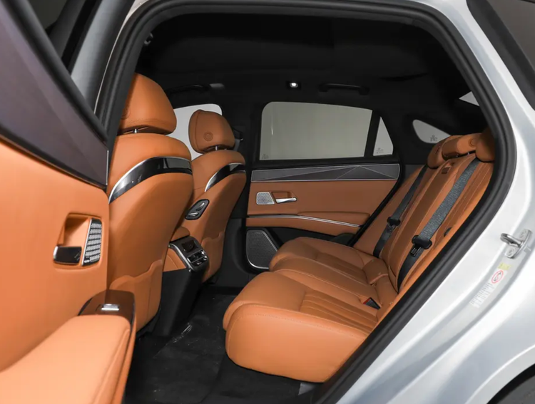 在舒适上也很高级,前后都采用隐藏玻璃,并且是多层夹胶玻璃,所以隔音非常好。内置有Dynaudio丹拿音响,整车16个扬声器,全景天窗,在按键的细节上都用镀铬包裹,后排的金属质感高于前排。而且后排座椅也很厚实,也能为腿部起到支撑,靠背角度也很大,坐上去的质感像半躺着。并且地板是纯平的状态,双独悬的加持,在舒适度的调校很柔和,毕竟悬架支持软硬调节,过减速带这些都很平稳的状态。