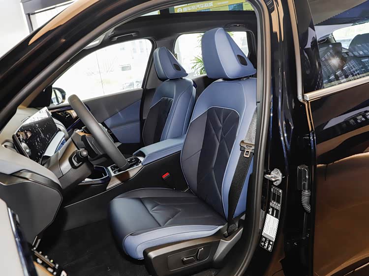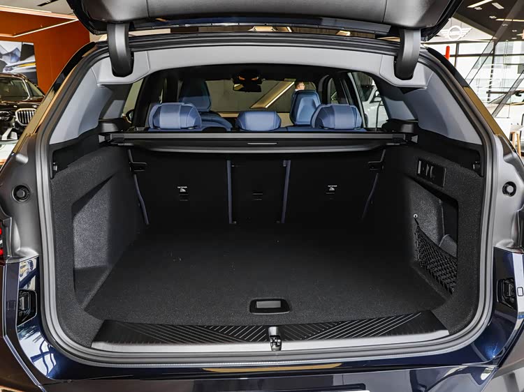 空间是这次最大升级。轴距2975mm,车身尺寸4820乘1920乘1720mm。后排膝部空间超过1米,接近标轴X5的行政级体验。加长加厚的双调拼色座椅支撑性和舒适性都在线。后备箱常规550L,放倒后排能扩展到1600L,家庭长途出行装载能力没问题。这个空间表现在豪华中型SUV里算第一梯队了。