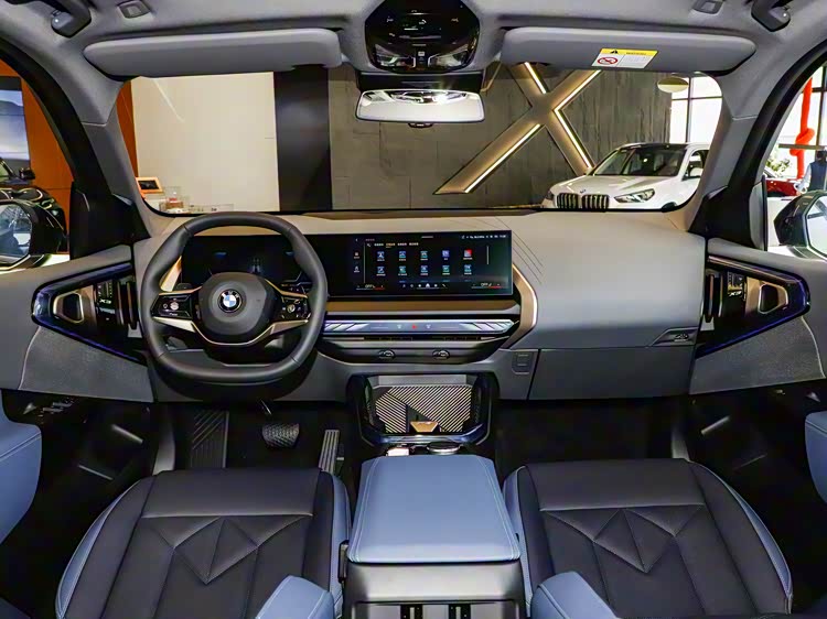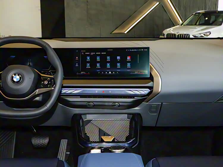外观用了全新设计语言。分体式环形光耀格栅配发光BMW标识,横纵交错几何线条夹着黑曜石立体饰块,摄像头和雷达都藏里面了。双L型头灯支持自适应远近光和随动转向,前包围三段式设计配导风槽和银色护板。侧面原石切割理念,凹凸型面配上扬腰线,轮拱造型独特没配撞色。车尾箭羽尾灯配隐藏排气,牌照框下移视觉更整体。
