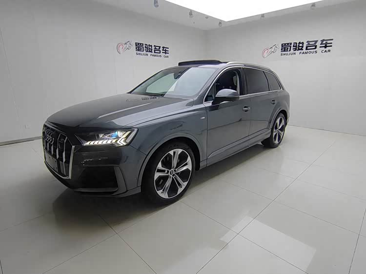 这辆 奥迪Q7(参数|询价) 2021款 55 TFSI quattro S line尊贵型,外观颜色为黑色,内饰是深色配色。车源地和上牌地都在成都。2021年1月首次上牌,在此期间过户3次。表显里程是4.65万公里,符合国VI排放标准。新车含税价是91.57万,而现在的二手车报价是37.29万,相比新车含税价便宜了54.28万。