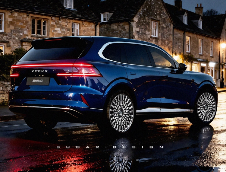 尾部造型经过了重新设计,尾灯由两条平行的细长灯带组成,其中上灯带为贯穿式设计,而下灯带则并未贯穿车身,牌照框上移至尾灯下沿,刹车灯设计在顶部高位,下包围尺寸比极氪9X更大,预计实车会有不错的颜值表现。