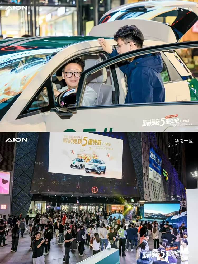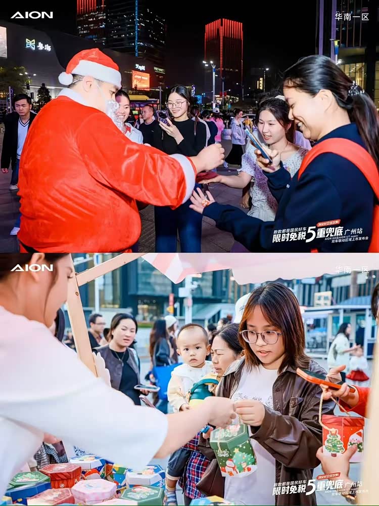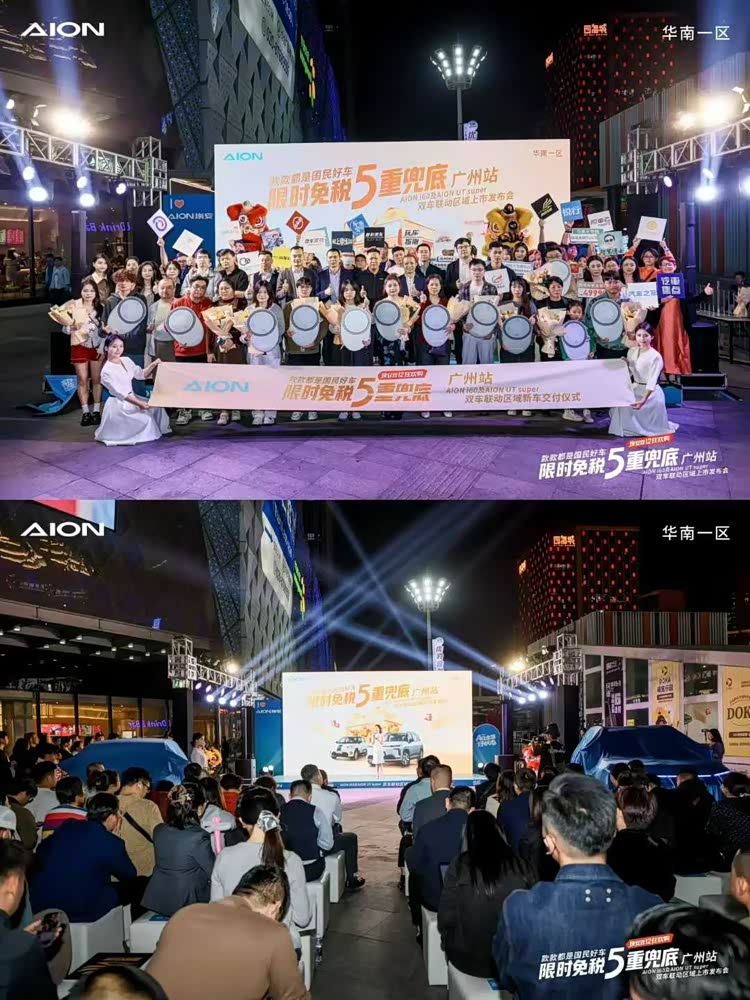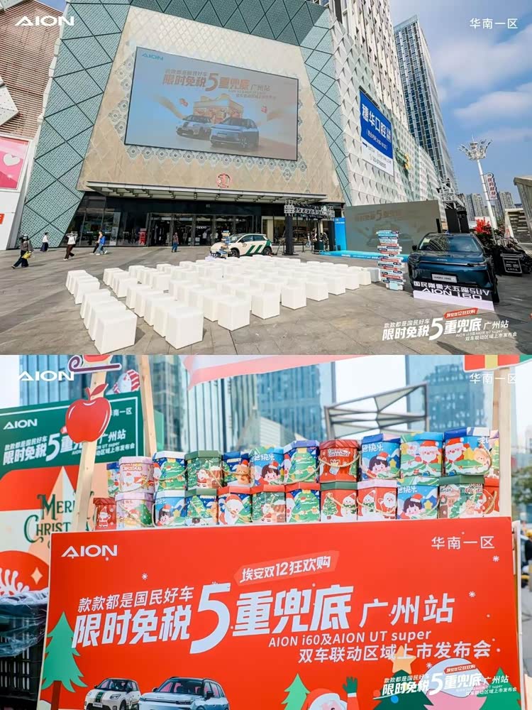 2025年12月24日,在圣诞平安夜的璀璨灯光下,广汽埃安在番禺万达广场隆重举行AION i60及AION UT Super双车联动区域上市发布会。活动现场以“限时免税 5重兜底”为主题,融合传统醒狮文化与现代智能科技,为广州消费者呈现了一场充满东方智慧与创新精神的汽车盛宴。